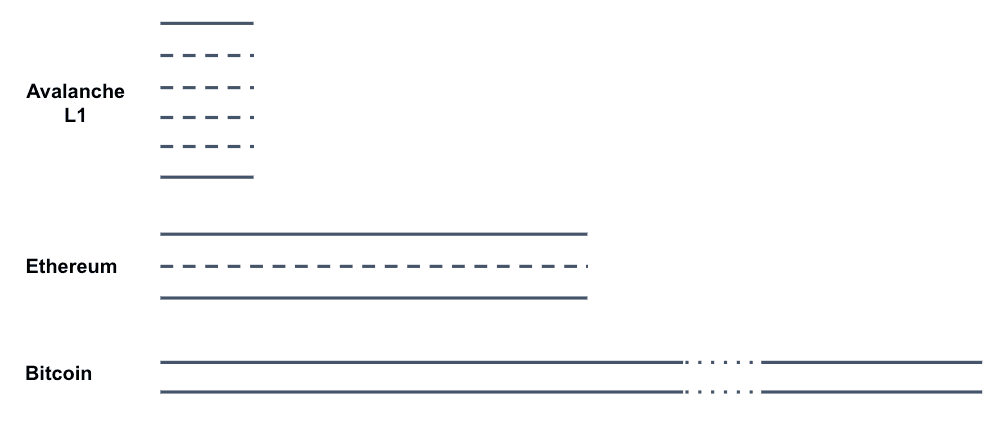 Let's take an analogy of a highway. Each car represents a transaction and they all travel the same speed. When you click send in your wallet, you're like a car entering the highway. When the transaction is finalized and unchangeable, it's like the car reaching its destination.